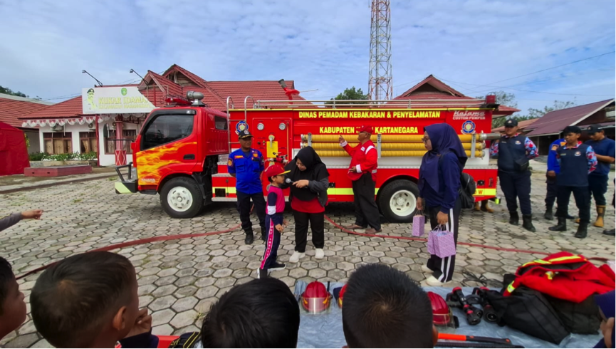 Sementara itu, Kasi Kesra Kecamatan Marangkayu Lili Herlina turut memberikan motivasi kepada anak-anak agar lebih mengenal profesi pemadam kebakaran.
