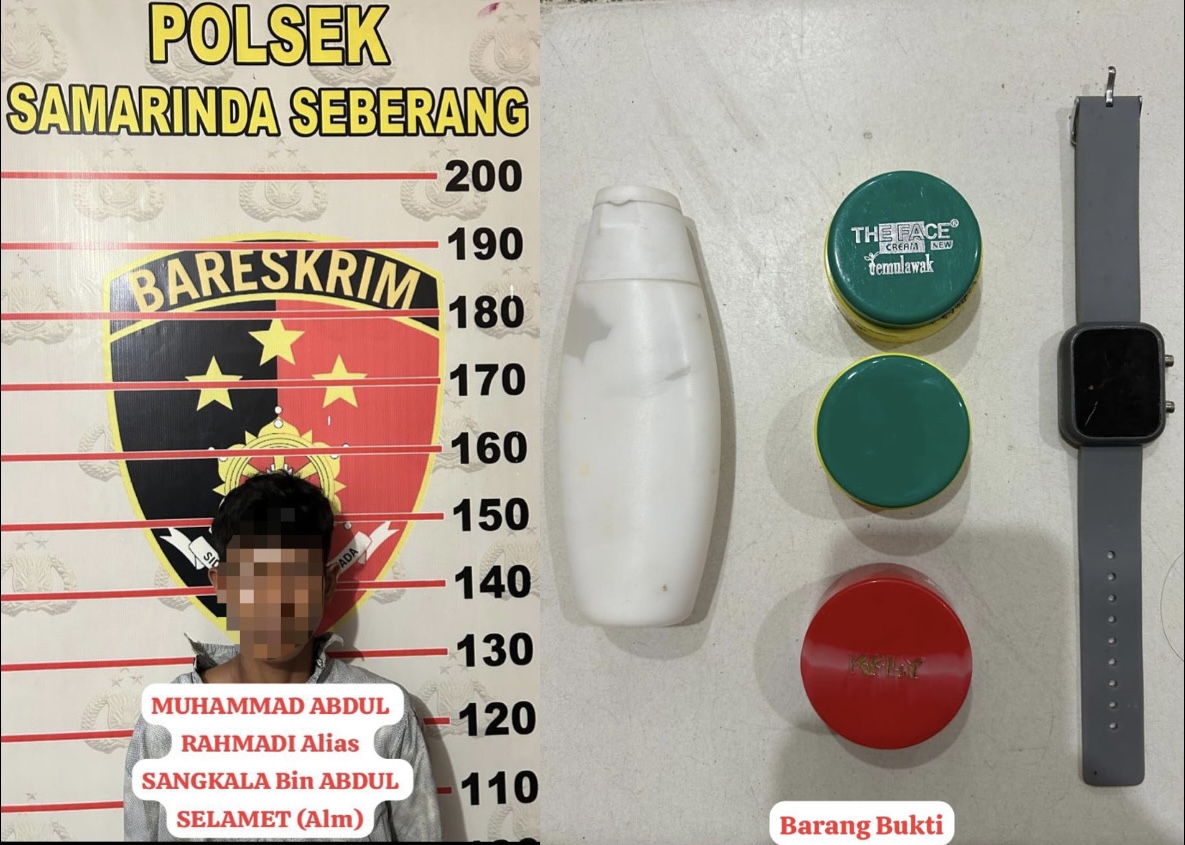 Berdasarkan laporan dari pelapor bahwa telah terjadi tindak pidana Pencurian itu anggota opsnal Reskrim polsek samarinda seberang melakukan penyelidikan dan pada hari selasa tanggal 29 Maret 2025 sekira pukul 17:30 Wita pelaku berhasil di amankan di jalan,Barang Bukti 1 Unit Hp Samsung Galaxy A 05 warna Hitam,1 Buah Jam Tangan Digital Warna Abu-abu,1 Buah Hand Body 1 Buah Bedak Kelly 2 Buah The Face Cream.Pelaku akan kenakan Pasal tindak pidana Pencurian sebagaimana dimaksud dalam rumusan pasal 363 KUHP .ungkap Kanit.(*)