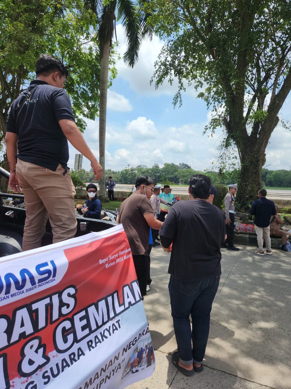 “Ini sebagai bentuk kepedulian JMSI. Kami mendukung mahasiswa dan masyarakat menyuarakan suara rakyat dengan damai. Minuman dan camilan ini sederhana, tapi semoga jadi penyemangat,” ujarnya.
