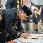 Mediasiutama.com, TENGGARONG – Setelah prosesi Sultan menyisik lembu, upacara adat Erau berlanjut dengan ritual sedekah naga yang melibatkan partisipasi tamu undangan dan masyarakat. Dalam tradisi ini, setiap orang melempar uang koin ke Tambak Karang, yaitu media berbentuk lukisan naga dari butiran beras berwarna yang telah disiapkan. Ritual ini melambangkan sedekah, doa kesejahteraan, serta kebersamaan seluruh lapisan masyarakat.