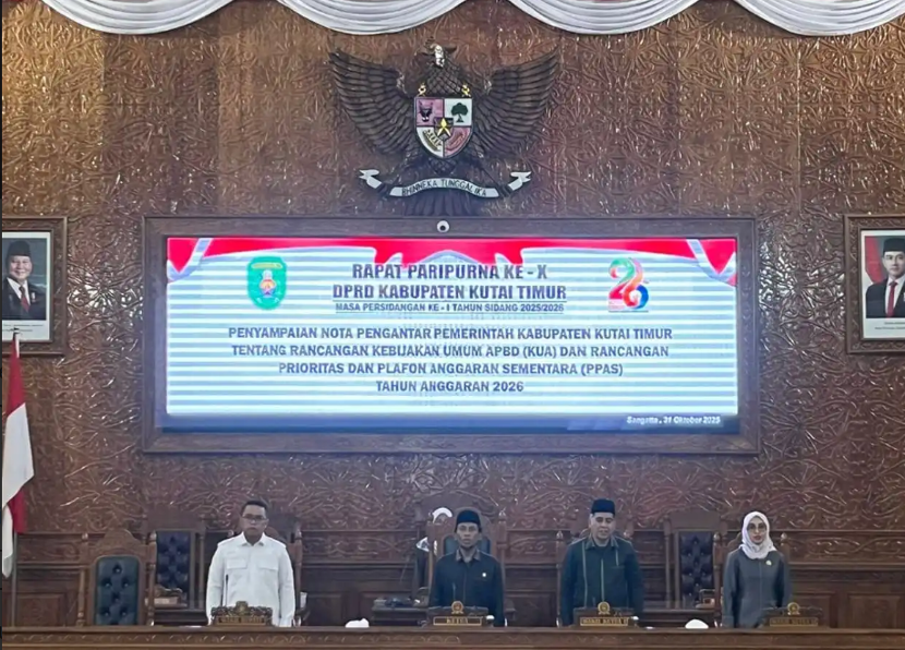 Dokumen KUA-PPAS tersebut disampaikan oleh Wakil Bupati Kutai Timur Mahyunadi saat mewakili Bupati Kutim dalam Rapat Paripurna ke-X DPRD Kutim masa persidangan ke-I Tahun Sidang 2025/2026 yang digelar di Ruang Utama DPRD Kutim, Jumat (31/10/2025).