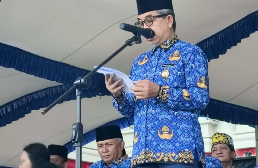 Bupati Ardiansyah membacakan sambutan Ketua Umum Dewan Pengurus KORPRI Nasional, Zudan Arif F, yang menekankan peran KORPRI sebagai abdi negara yang bekerja tulus, melayani masyarakat dengan sepenuh hati, dan menjaga kualitas pelayanan publik di seluruh wilayah Indonesia.