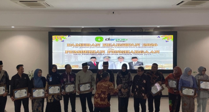 Mediasiutama.com, Kutai Kartanegara – Komitmen memperkuat tata kelola pemerintahan berbasis akuntabilitas kembali ditegaskan Pemerintah Kabupaten Kutai Kartanegara melalui pemberian penghargaan kepada sejumlah perangkat daerah atas capaian hasil pengawasan kearsipan internal Tahun 2025. Kegiatan tersebut berlangsung di Perpustakaan Umum Kabupaten Kutai Kartanegara pada Kamis (9/4/2026).